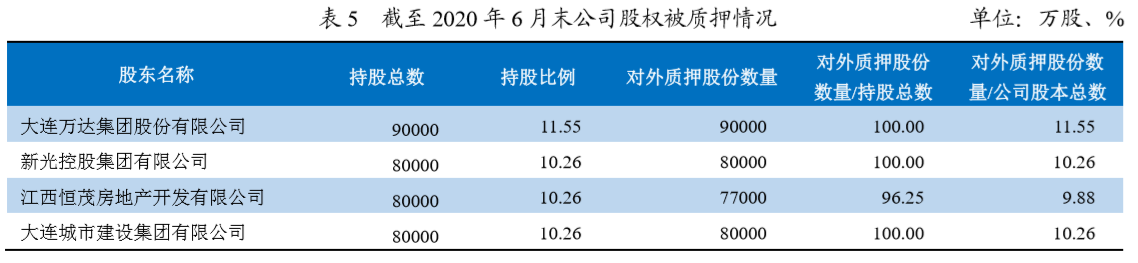 根据国家企业信用信息公示系统,截至2020年6月末,百年人寿共有53.7亿股被质押,占全部股权的68.89%。其中万达集团、新光控股集团有限公司、大连城市建设集团有限公司、科瑞集团有限公司等主要股东已将全部股权进行了质押。