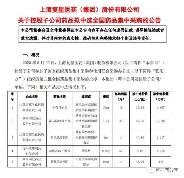 8月20日,全国药品集采在上海举行,复星医药中标5个药品。降价幅度不小!集采的靴子落地了,等待下周中报。