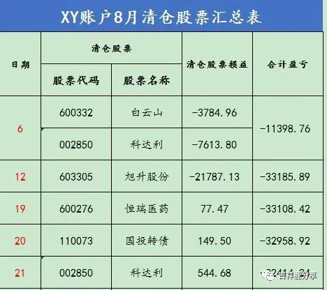 清仓股票汇总表:今天清仓1002850科达利。截止8月21日,清仓股浮亏32414.24元。