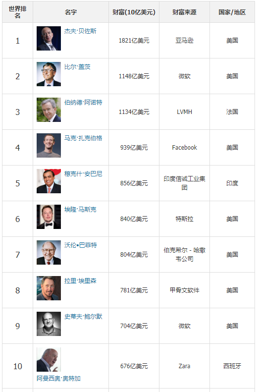 根据福布斯全球实时富豪榜显示,目前全球的首富是亚马逊的创始人贝佐斯,其个人财富达到1821亿美元,这个财富要比马云多出1,140亿美元左右。