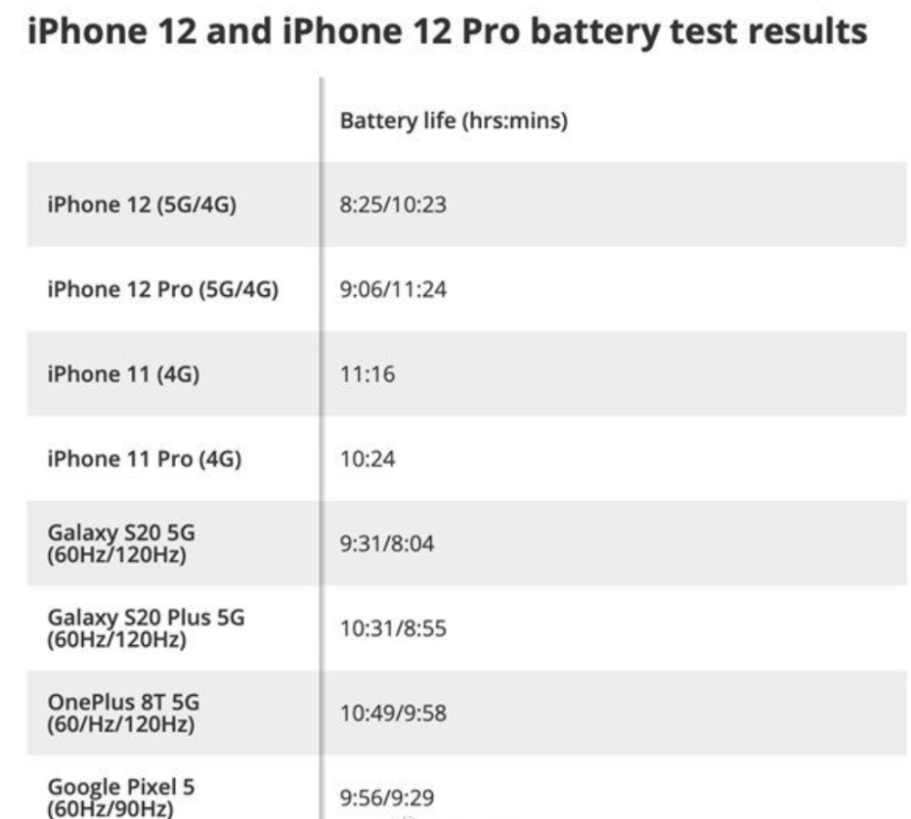 相比上一代,今年的iPhone 12系列因为支持了5G,加上电池还缩小了一些,所以很多网友就更关心其续航能力了。令人遗憾的是,苹果iPhone 12与预料的一样续航不行,根据外媒测试,iPhone 12在开启5G网络后,续航能力比4G减少了多达2个小时,在几款测试的手机中倒数第一,而对此苹果高管回应称,苹果做了各方面的软件优化,未来还会与运营商做更多的优化。