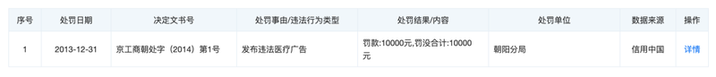 值得一提的是,据天眼查APP显示,2013年时伊美尔曾因发布违法医疗广告而被朝阳分局处以1万元罚款,2017年至2019年期间天津伊美尔先后5次因广告违法而受到行政处罚。