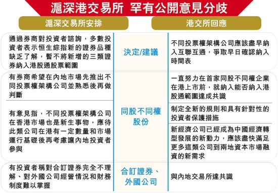 港交所罕有表明撑同股不同权公司应纳入互联互通,解释已为相关公司制定全新规则和具针对性的投资者保护措施;另外,新经济公司已经成为中国经济转型发展的新动力,应该尽快满足更多这类公司到两地资本市场融资的新需求等。