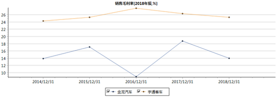 同为国内客车生产龙头企业,金龙汽车在2018年以61927辆的销量,反超宇通客车60868辆的销量,成为国内客车销售冠军。不过,常年以来两家公司盈利能力的差距却没有改观。