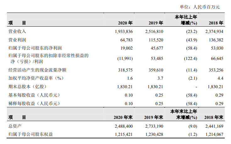 数据显示,2020年,中国石油实现营业收入19338.36亿元,比上年同期下降23.2%,归属于母公司股东的净利润为人民币190.06亿元,比上年同期下降58.4%;拟10派0.8742元。