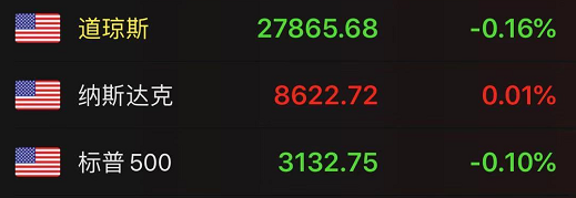美股三大股指也悉数转涨,截止发稿,道指涨0.01%,纳指涨0.16%,标普500指数涨0.02%。芯片股领涨,费城半导体指数目前涨0.49%。