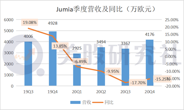 近日,Jumia公布了2020财年第四季度财报。财报显示,Q4营收4176万欧元,同比下降15.21%,GMV为2.31亿欧元,同比下降21%,净亏损4708万欧元,同比收窄。虽说第四季度营收超过预期,且EBITDA亏损收窄,但Jumia股价却在下跌。截至目前,Jumia股价为46.20美元,市值为37.53亿美元。