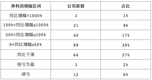 重点细分行业业绩也较为不错。比如:集成电路行业,下游需求旺盛使得半导体行业景气度持续走高,合计26家,净利润增幅达154%;光伏行业,受国家政策支持发展态势良好,业绩大幅提升,合计8家,合计净利润增幅达94%;体外诊断行业,受疫情防控和医疗需求增加影响,部分检测试剂、检测仪器等医疗器械公司业绩爆发式增长,合计5家,合计净利润增幅达2020%。