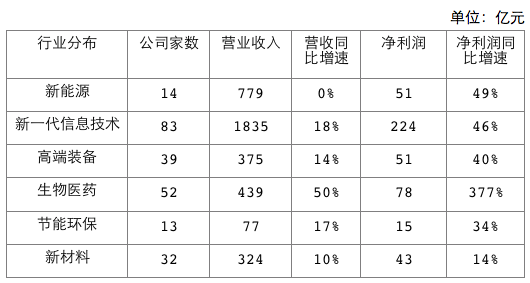 以科创板六大战略新兴领域2020年度业绩来看,生物医药领域的业绩增势最为亮眼,52家上市公司营收同比增长50%,净利润同比增长377%;新一代信息技术领域,83家上市公司营收同比增长18%,净利润同比增长46%;新能源领域,14家上市公司营收同比持平,净利润同比增长49%。